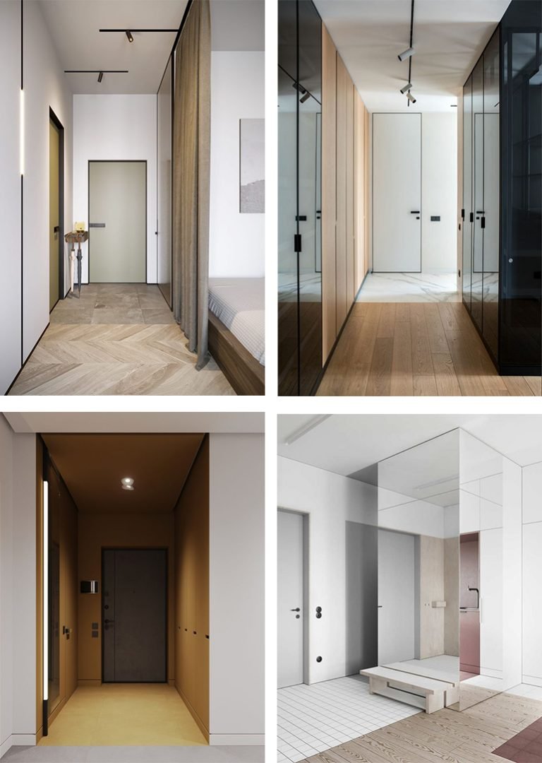 - in uno spazio stretto e lungo, come un corridoio, vi consiglio di creare una fila di faretti circolari più piccoli, distanziati ad intervalli regolari, solitamente a 80-90 cm, che garantiscono una perfetta illuminazione.