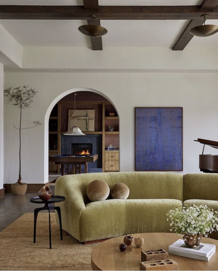 Posiziona il divano in modo che diventi il centro dell’attenzione. Può essere rivolto verso un camino, una finestra panoramica o una parete d’accento. Questo crea immediatamente un senso di ordine nello spazio. Per evidenziarlo ancora di più puoi pensare di distanziarlo dal muro, e inserire dietro una stretta madia (L I N K). Diventerà così un indiscusso protagonista!