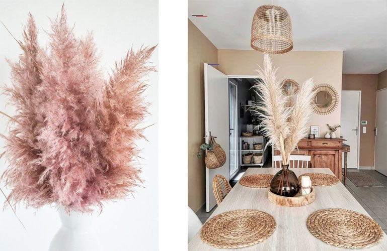 Un’atmosfera rilassante è assicurata in qualsiasi spazio, e a seconda dell’altezza di taglio, si adatta a molte aree della casa, dai tavoli da caffè vicini ai divani, alle madìe alte in legno. Le texture naturali inserite negli interni minimali aggiungono calore e creano un’atmosfera invitante. Ogni bouquet di pampas definisce un’inquadratura pittoresca, strettamente connessa a uno stile prevalentemente, ma non esclusivamente, boho chic. E’ una tendenza che sta dimostrando di aggiungere raffinatezza sia agli interni minimali che ai classici e sofisticati.