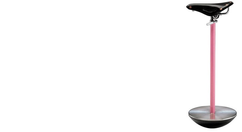 La base in ghisa semisferica è gommata, per garantire stabilità durante il movimento, e l’estetica è del tutto eccezionale, a partire dalla scelta dei colori: il rosa intenso per l’asse verniciato che viene smorzato dall’audace sellino in pelle nera e che contrasta la soave natura del colore femminile per eccellenza.